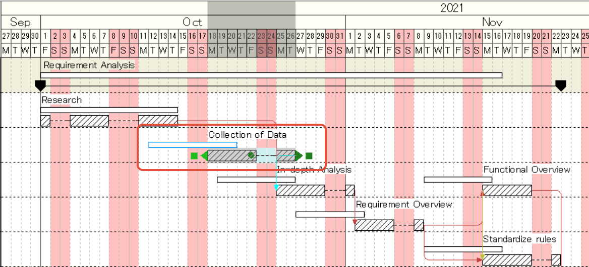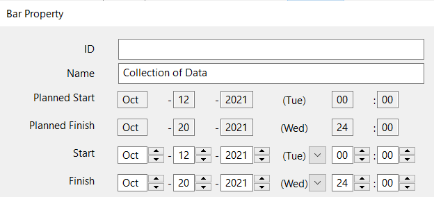 - By using “Bar Layout” function to display both the baseline schedule and the actual schedule, you can compare and check the planned and actual of activities.