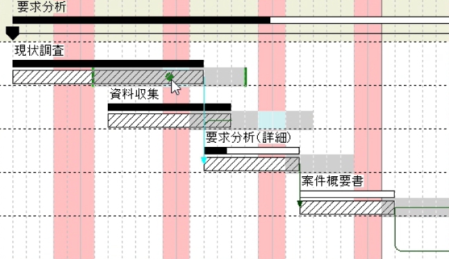 - マウスで線端のマーカーを移動させることにより、期間を伸縮できます。