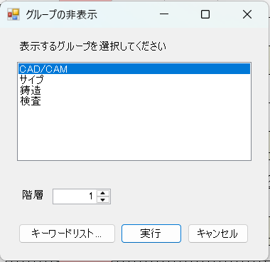本ツールでは、表示したいグループを複数選択し、表示中のビューの指定した階層において選択されなかったグループを、まとめて非表示にすることができます。